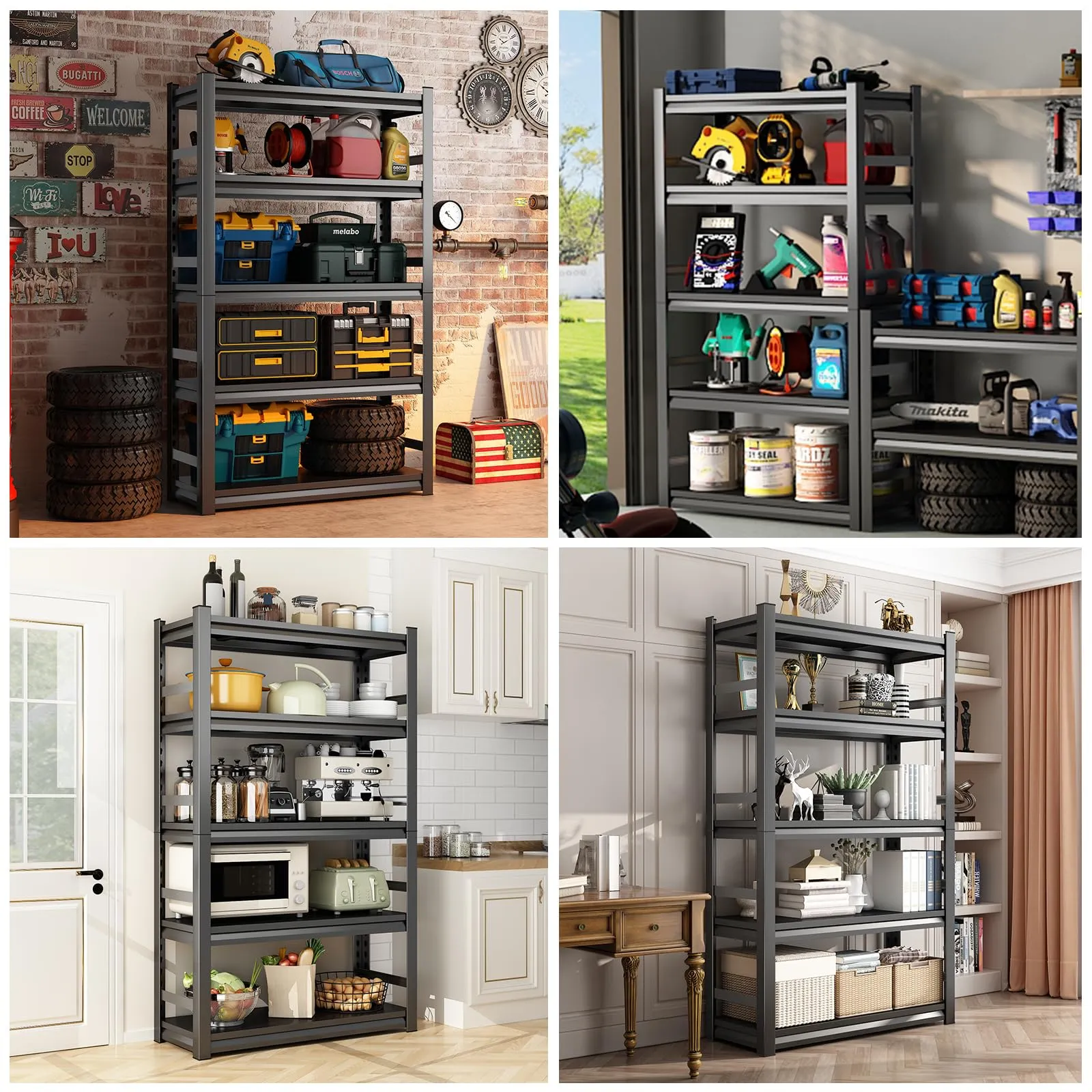 Get your stuff off of the floor and organized on the shelves of this folding storage rack. The four-tier design has plenty of space to get your closet, garage, or storage room in shape.