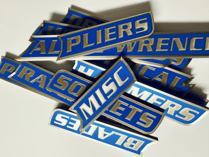 Bring order and personality to your workspace with ColKy Designs Custom Magnetic Tool Labels.Designed for toolboxes, carts, drawers, and cabinets, these magnetic labels make it easy to identify your tools at a glance — no more wasted time searching!